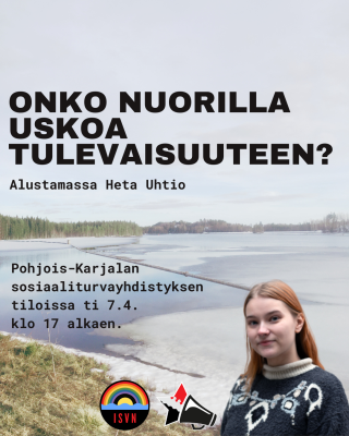 Ensi tiistaina kuullaan ja keskustellaan nuorten uskosta tulevaisuuteen. Paikalla keskustelua alustamassa on Vasemmistonuorten puheenjohtaja Heta Uhtio.